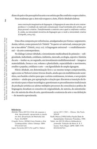 Referências Abuhab, Flávio (2013) A Arte não esquece a Arte. Aproximação: apropriação e citação em Arte. (Dissertação de Mestrado) São Paulo: IA-UNESP. Crispolti, Enrico. (2004) Como Estudar a Arte Contemporânea. Lisboa: Estampa. ISBN: 972-33-2012-6. Lopes, Fernanda (2011) Por quê? In: Nelson