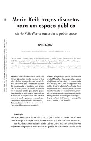 Sabino, Isabel (2015) “Maria Keil: traços discretos para um espaço público.” Revista :Estúdio, Artistas sobre Outras Obras. ISSN 1647-6158, e-ISSN 1647-7316. Vol. 6 (11): 182-191.