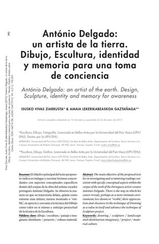 António Delgado: un artista de la tierra. Dibujo, Escultura, identidad y memoria para una toma de conciencia António Delgado: an artist of the earth. Design, Sculpture, identity and memory for awareness ISUSKO VIVAS ZIARRUSTA* & AMAIA LEKERIKABEASKOA GAZTAÑAGA** Artículo completo submetido en 12 de enero y aprobado el 24 de enero de 2015