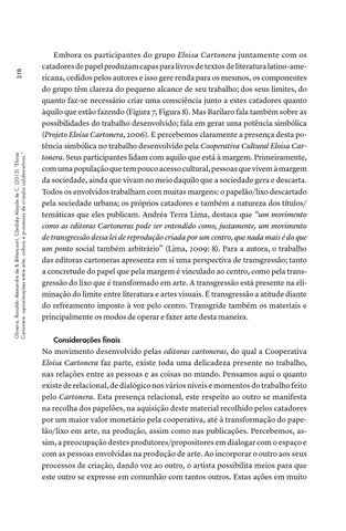 210 Oliveira, Ronaldo Alexandre de & Bittencourt, Cândida Alayde de C. (2015) “Eloísa Cartonera: aproximações entre arte, cultura e processos de criação colaborativos.”