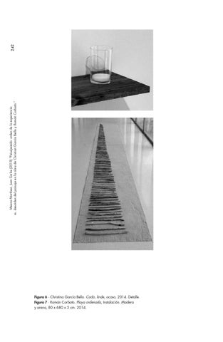 Figura 6 ∙ Christina García Bello. Codo, linde, ocaso, 2014. Detalle. Figura 7 ∙ Román Corbato. Playa ordenada, Instalación. Madera y arena, 80 x 680 x 5 cm. 2014.