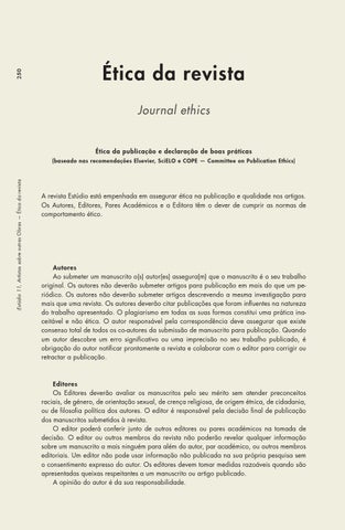 (baseado nas recomendações Elsevier, SciELO e COPE — Committee on Publication Ethics)