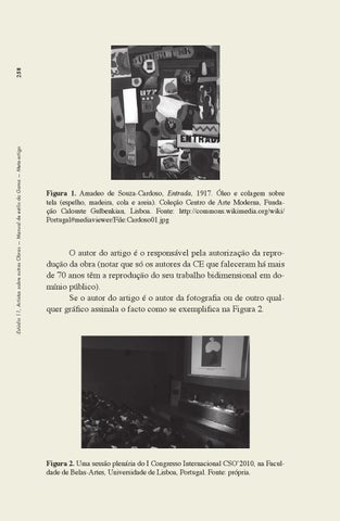 O autor do artigo é o responsável pela autorização da reprodução da obra (notar que só os autores da CE que faleceram há mais de 70 anos têm a reprodução do seu trabalho bidimensional em domínio público). Se o autor do artigo é o autor da fotografia ou de outro qualquer gráfico assinala o facto como se exemplifica na Figura 2.