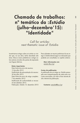 Chamada de trabalhos: nº temático da :Estúdio (julho–dezembro'15): "Identidade"