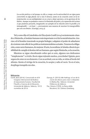 Garriga, R. (2013) Little Nothings: el uso de la noción de silencio para crear e interpretar. In Medias Res. Valencia: Universitat Politécnica de València. Paz, Octavio (1993). La llama doble. Barcelona: Ed. Galaxia Gutenberg.