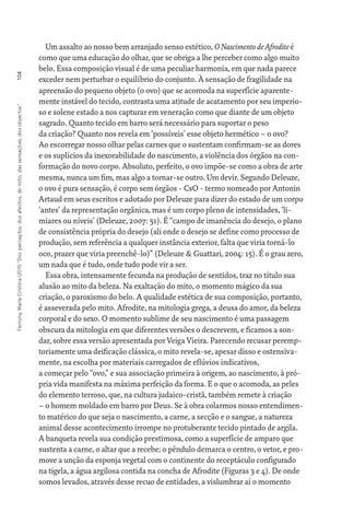 104 Ferrony, Maria Cristina (2011) “Dos perceptos, dos afectos, do mito, das sensações, dos objectos”