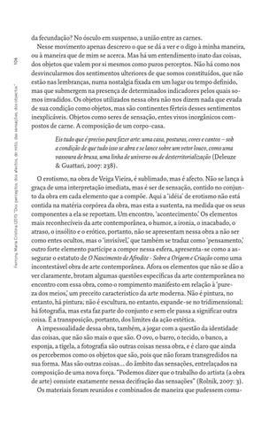 106 Ferrony, Maria Cristina (2011) “Dos perceptos, dos afectos, do mito, das sensações, dos objectos”