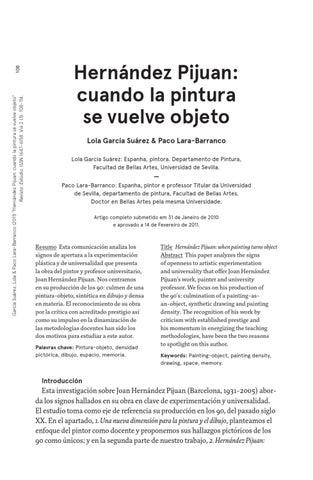 Hernández Pijuan: cuando la pintura se vuelve objeto Lola García Suárez & Paco Lara-Barranco Lola García Suárez: Espanha, pintora. Departamento de Pintura, Facultad de Bellas Artes, Universidad de Sevilla.