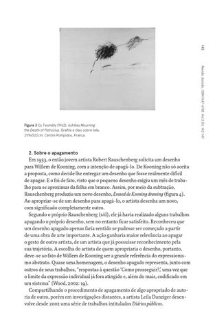 Em 1953, o então jovem artista Robert Rauschenberg solicita um desenho para Willem de Kooning, com a intenção de apagá-lo. De Kooning não só aceita a proposta, como decide lhe entregar um desenho que fosse realmente difícil de apagar. E o foi de fato, visto que o pequeno desenho exigiu um mês de trabalho para se aproximar da folha em branco. Assim, por meio da subtração, Rauschenberg produziu um novo desenho, Erased de Kooning drawing (figura 4). Ao apropriar-se de um desenho para apagá-lo, o artista desenha um novo, com significado completamente outro. Segundo o próprio Rauschenberg (s/d), ele já havia realizado alguns trabalhos apagando o próprio desenho, sem no entanto ficar satisfeito. Reconheceu que um desenho apagado apenas faria sentido se pudesse ser começado a partir de uma obra de arte importante. A ação ganharia maior relevância ao apagar o gesto de outro artista, de um artista que já possuísse reconhecimento pela sua trajetória. A escolha do artista de quem apropriaria o desenho, portanto, deve-se ao fato de Willem de Kooning ser a grande referência do expressionismo abstrato. Quase uma homenagem, o desenho apagado representa, junto com outros de seus trabalhos, “respostas à questão ‘Como prosseguir?,’ uma vez que o limite da expressão individual já fora atingido e, além do mais, codificado em um sistema” (Wood, 2002: 19). Compartilhando o procedimento de apagamento de algo apropriado de autoria de outro, porém em investigações distantes, a artista Leila Danziger desenvolve desde 2002 uma série de trabalhos intitulados Diários públicos.