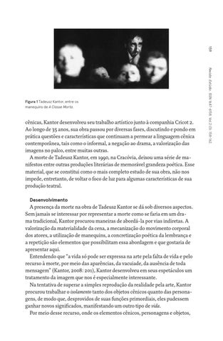 cênicas, Kantor desenvolveu seu trabalho artístico junto à companhia Cricot 2. Ao longo de 35 anos, sua obra passou por diversas fases, discutindo e pondo em prática questões e características que continuam a permear a linguagem cênica contemporânea, tais como o informal, a negação ao drama, a valorização das imagens no palco, entre muitas outras. A morte de Tadeusz Kantor, em 1990, na Cracóvia, deixou uma série de manifestos entre outras produções literárias de memorável grandeza poética. Esse material, que se constitui como o mais completo estudo de sua obra, não nos impede, entretanto, de voltar o foco de luz para algumas características de sua produção teatral. Desenvolvimento