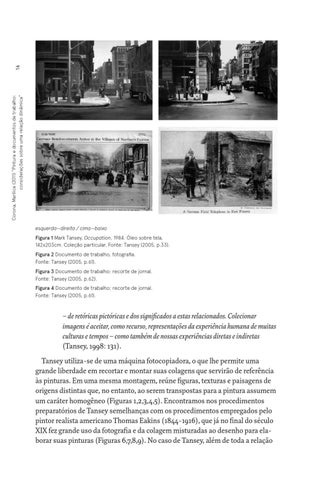 esquerda—direita / cima—baixo Figura 1 Mark Tansey, Occupation, 1984. Óleo sobre tela, 142x203cm. Coleção particular. Fonte: Tansey (2005, p.33). Figura 2 Documento de trabalho, fotografia. Fonte: Tansey (2005, p.61). Figura 3 Documento de trabalho: recorte de jornal. Fonte: Tansey (2005, p.62). Figura 4 Documento de trabalho: recorte de jornal. Fonte: Tansey (2005, p.61).