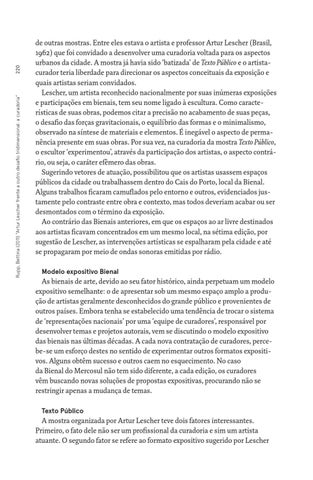 220 Rupp, Bettina (2011) “Artur Lescher frente a outro desafio tridimensional: a curadoria”
