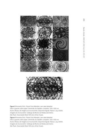 Figura 3 Fernando Diniz. Painel Caos Mandala, sem data (detalhe). Óleo e guache sobre papel. Dimensão do trabalho completo: 250 x 500 cm. Acervo Museu de Imagens do Inconsciente. Disponível Aguilar, Nelson, org. (2000). Imagens do Inconsciente. Catálogo da Mostra do Redescobrimento. São Paulo: Associação Brasil 500 anos Artes Visuais. Figura 4 Fernando Diniz. Painel Caos Mandala, sem data (detalhe). Óleo e guache sobre papel. Dimensão do trabalho completo: 250 x 500 cm. Acervo Museu de Imagens do Inconsciente. Disponível Aguilar, Nelson, org. (2000). Imagens do Inconsciente. Catálogo da Mostra do Redescobrimento. São Paulo: Associação Brasil 500 anos Artes Visuais.