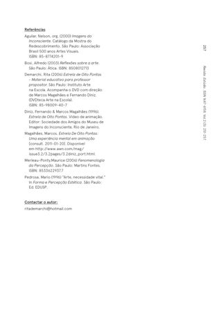 Demarchi, Rita (2006) Estrela de Oito Pontas - Material educativo para professor propositor. São Paulo: Instituto Arte na Escola. Acompanha o DVD com direção de Marcos Magalhães e Fernando Diniz. (DVDteca Arte na Escola). ISBN: 85-98009-40-7 Diniz, Fernando & Marcos Magalhães (1996). Estrela de Oito Pontas. Vídeo de animação. Editor: Sociedade dos Amigos do Museu de Imagens do Inconsciente, Rio de Janeiro. Magalhães, Marcos. Estrela De Oito Pontas: Uma experiência mental em animação [consult. 2011-01-20]. Disponível em http://www.awn.com/mag/ issue3.2/3.2pages/3.2diniz_port.html. Merleau-Ponty,Maurice (2006) Fenomenologia da Percepção. São Paulo: Martins Fontes. ISBN: 8533622937.7 Pedrosa, Mario (1996) “Arte, necessidade vital.” In Forma e Percepção Estética. São Paulo: Ed. EDUSP.