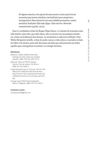 Referências Benjamin, Walter (2008) El Narrador. Santiago de Chile: Ediciones metales pesados. ISBN: 978-956-8415-20-4 Blanchot, Maurice (1987) O espaço literário. Rio de Janeiro: Ed. Rocco. ISBN: 85-325-0289-X Codex Ephraemi (séc.V). [Consult. 2011-01-30] Manuscrito. Biblioteca Nacional de Paris. Disponível em http://upload.wikimedia.org/ wikipedia/commons/c/cc/Codex_ephremi. jpg Sontag, Susan (2006) Sobre fotografía. México: Alfaguara. ISBN: 970-770-490-X