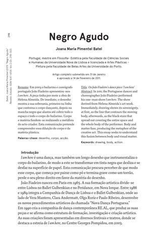 Batel, Joana Maria Pimentel (2011) “Negro Agudo” Revista :Estúdio. ISSN 1647-6158. Vol.2 (3): 298-303.