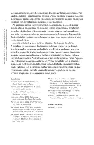 32 Marcondes, Neide (2011) “Sonâncias e (Dis)Sonâncias na Arte Contemporânea: Instalações e Intervenções”