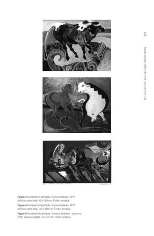 Figura 3 Humberto Espíndola. Ícones Kadiwéu. 1997. Acrílica sobre tela. 95 x 120 cm. Fonte: própria. Figura 4 Humberto Espíndola. Ícones Kadiwéu. 1997. Acrílica sobre tela. 130 x 160 cm. Fonte: própria. Figura 5 Humberto Espíndola. Cavalos Kadiwéu - Noturno. 1998. Gravura digital. 21 x 30 cm. Fonte: própria.