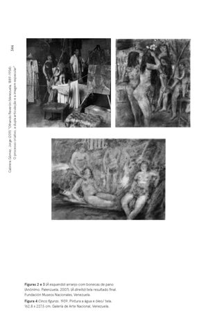 Figuras 2 e 3 (À esquerda) arranjo com bonecas de pano (Anónimo. Palenzuela, 2007). (À direita) tela resultado final. Fundación Museos Nacionales, Venezuela. Figura 4 Cinco figuras. 1939. Pintura a água e óleo/ tela. 162,8 x 227,5 cm. Galería de Arte Nacional, Venezuela.