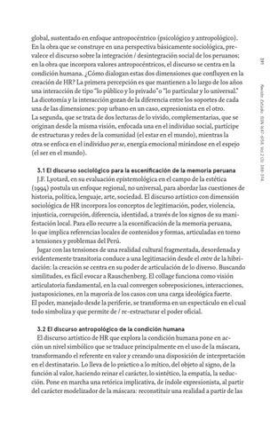 3.1 El discurso sociológico para la escenificación de la memoria peruana