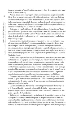40 Pereira, Maria Leonor de Almeida (2011) “Coabitar: um modelo de presença na obra de Helena Almeida”