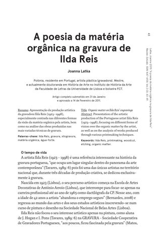 Latka, Joanna (2011) “A poesia da matéria orgânica na gravura de Ilda Reis” Revista :Estúdio. ISSN 1647-6158. Vol.2 (3): 43-49.