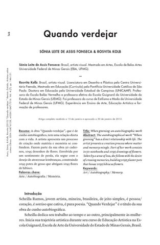 Assis, Sónia, & Kolb, Rosvita (2013) “Quando verdejar.” Revista :Estúdio, Artistas sobre outras Obras. ISSN 1647-6158, e-ISSN 1647-7316. Vol. 4 (7): pp. 146-151.