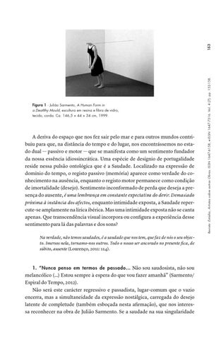 melancólico (…) Estou sempre à espera do que vou fazer amanhã” (Sarmento/ Espiral do Tempo, 2012). Não será este carácter regressivo e passadista, lugar-comum que o vazio encerra, mas a simultaneidade da expressão nostálgica, carregada do desejo latente de completude (também esboçada nesta afirmação), que nos interessa reconhecer na obra de Julião Sarmento. Se a saudade na sua singularidade