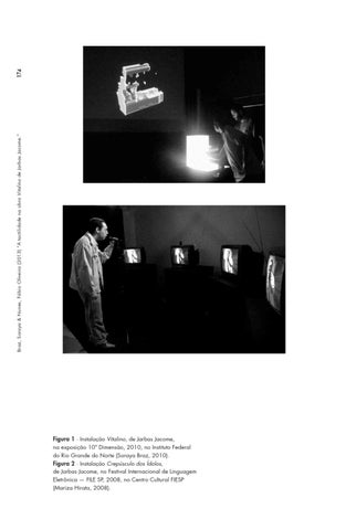 Figura 1 ∙ Instalação Vitalino, de Jarbas Jacome, na exposição 10ª Dimensão, 2010, no Instituto Federal do Rio Grande do Norte (Soraya Braz, 2010). Figura 2 ∙ Instalação Crepúsculo dos Ídolos, de Jarbas Jacome, no Festival Internacional de Linguagem Eletrônica — FILE SP, 2008, no Centro Cultural FIESP (Mariza Hirata, 2008).