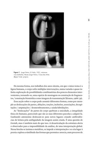 Da mesma forma, nos trabalhos dos anos oitenta, em que o único tema é a figura humana, o corpo sofre múltiplas intervenções, numa variada e quase infinita exploração de possibilidades combinatórias dos poucos elementos intervenientes, tornando-se, uma espécie de montagem ou construção de fragmentos, ‘construção biomórfica como imagem de transmutação’(Krauss, 1966: 39). Essa acção sobre o corpo pode assumir diferentes formas, como por exemplo as deslocações de partes, ablações, torções, inclusões, associações, decapitações / amputações / desmembramentos, e ainda hibridações. As “deslocações” de partes do corpo quebram a unicidade, a integridade física do humano, parecendo que são as suas diferentes parcelas a adquiri-la. Ganhando autonomia deslocam-se para novos lugares criando ambivalências de leitura pela ambiguidade da imagem assim criada. É uma questão de Gestalt, mas é também mais do que isso. A desarticulação da estrutura alerta o observador para a impossibilidade da análise, de uma interpretação global. Nessa brecha se insinua a metáfora, se impede a interpretação e se cria lugar à poesia: explora a similitude das formas que permuta e associa, num processo de