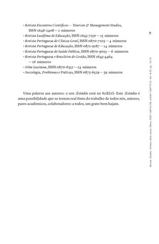 Uma palavra aos autores: o seu :Estúdio está no SciELO. Este :Estúdio é uma possibilidade que se tornou real fruto do trabalho de todos nós, autores, pares académicos, colaboradores: a todos, um grato bem hajam.