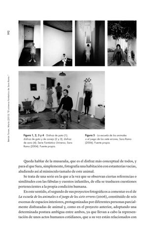 Figura 1, 2, 3 y 4 ∙ Disfraz de pato (1); disfraz de gato y de conejo (2 y 3); disfraz de asno (4); Serie Fantástico Universo, Sara Ramo (2004). Fuente propia.