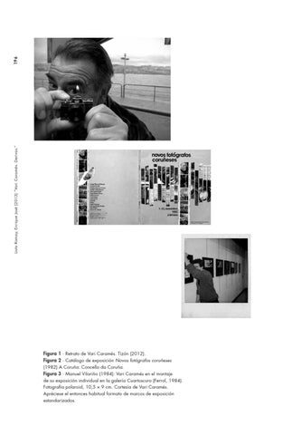 Figura 1 ∙ Retrato de Vari Caramés. Tizón (2012). Figura 2 ∙ Catálogo de exposición Novos fotógrafos coruñeses (1982) A Coruña: Concello da Coruña. Figura 3 ∙ Manuel Vilariño (1984): Vari Caramés en el montaje de su exposición individual en la galería Cuartoscuro (Ferrol, 1984). Fotografía polaroid, 10,5 × 9 cm. Cortesía de Vari Caramés. Apréciese el entonces habitual formato de marcos de exposición estandarizados.