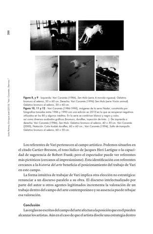 Figura 8, y 9 ∙ Izquierda: Vari Caramés (1986), Sen título (serie A movida viguesa). Gelatino bromuro al selenio, 50 × 60 cm. Derecha: Vari Caramés (1996) Sen título (serie Visión animal). Gelatino bromuro al selenio, 50 × 60 cm. Figura 10, 11 y 12 ∙ Vari Caramés (1986-1990), imágenes de la serie Nadar, constituída por fotografías tomadas entre 1986 y 1990 con una edición en 2010 en la que se recuperan negativos utilizados en los 80 y algunos inéditos. En la serie se combinan blanco y negro y color, así como diversos acabados gráficos (bromuro, duraflex, inyección de tinta…). De izquierda a derecha: Vari Caramés (1986), Sen título. Gelatino bromuro al selenio, 40 × 30 cm. Vari Caramés (2000), Natación. Color kodak duraflex, 60 × 60 cm.; Vari Caramés (1994), Salto de trampolín. Gelatino bromuro al selenio, 60 × 50 cm.