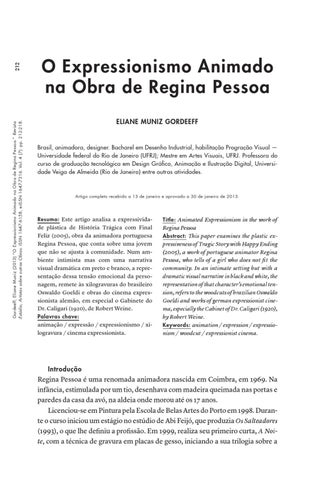212 Gordeeff, Eliane Muniz (2013) “O Expressionismo Animado na Obra de Regina Pessoa.” Revista :Estúdio, Artistas sobre outras Obras. ISSN 1647-6158, e-ISSN 1647-7316. Vol. 4 (7): pp. 212-218.