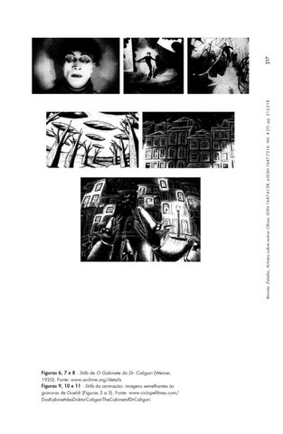 Figuras 6, 7 e 8 ∙ Stills de O Gabinete do Dr. Caligari (Weiner, 1920). Fonte: www.archive.org/details Figuras 9, 10 e 11 ∙ Stills da animação: imagens semelhantes às gravuras de Goeldi (Figuras 3 a 5). Fonte: www.ciclopefilmes.com/ DasKabinettdesDoktorCaligariTheCabinetofDrCaligari