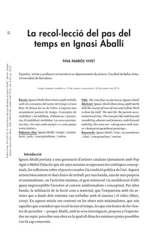 22 Padrós Vivet, Fina (2013) “La recol·lecció del pas del temps en Ignasi Aballí.” Revista :Estúdio, Artistas sobre outras Obras. ISSN 1647-6158, e-ISSN 1647-7316. Vol. 4 (7): pp. 22-27.