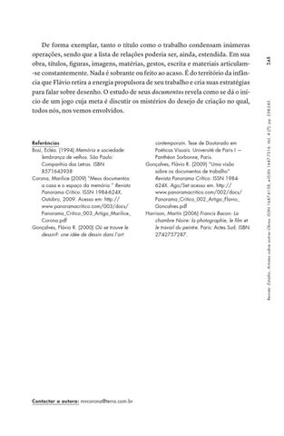 contemporain. Tese de Doutorado em Poéticas Visuais. Université de Paris I — Panthéon Sorbonne, Paris. Gonçalves, Flávio R. (2009) “Uma visão sobre os documentos de trabalho” Revista Panorama Crítico. ISSN 1984624X. Ago/Set acesso em. http:// www.panoramacritico.com/002/docs/ Panorama_Critico_002_Artigo_Flavio_ Goncalves.pdf Harrison, Martin (2006) Francis Bacon: La chambre Noire: la photographie, le film et le travail du peintre. Paris: Actes Sud. ISBN 2742757287.