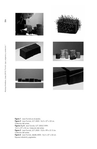 Figura 1 ∙ Joan Furriols en el estudio. Figura 2 ∙ Joan Furriols, S/T. 2003. 16,3 × 27 × 22 cm. Colección del artista. Figuras 3 y 4 ∙ Joan Furriols, S/T. 2003/1999. 16,3 × 27 × 22 cm. Colección del artista. Figura 5 ∙ Joan Furriols, S/T. 2003. 15,8 × 99 × 21.5 cm. Colección del artista. Figura 6 ∙ Joan Furriols, detalle 2003. 16,3 × 27 × 22 cm. Espuma industrial y pigmentos.