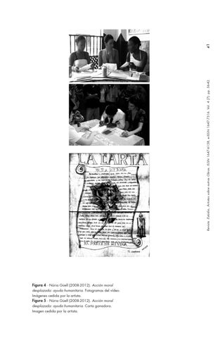 Figura 4 ∙ Núria Güell (2008-2012). Acción moral desplazada: ayuda humanitaria. Fotogramas del vídeo. Imágenes cedida por la artista. Figura 5 ∙ Núria Güell (2008-2012). Acción moral desplazada: ayuda humanitaria. Carta ganadora. Imagen cedida por la artista.