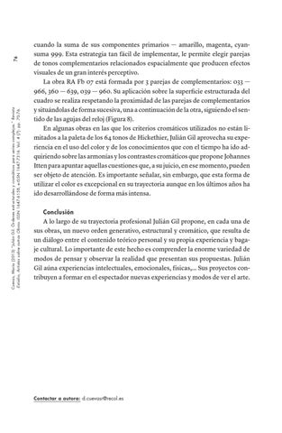 76 Cuevas, Maria (2013) “Julián Gil. Órdenes estructurales y cromáticos para series complejas.” Revista :Estúdio, Artistas sobre outras Obras. ISSN 1647-6158, e-ISSN 1647-7316. Vol. 4 (7): pp. 70-76.