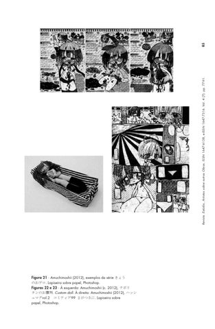 Figura 21 ∙ Amuchimoshii (2012), exemplos da série きょう のおゲロ. Lapiseira sobre papel, Photoshop. Figuras 22 e 23 ∙ À esquerda: Amuchimoshii (c. 2012), ナポリ タンのお葬列. Custom doll. À direita: Amuchimoshii (2012), ハッシ ュマグvol.2 コミティア99 2がつ5に. Lapiseira sobre papel, Photoshop.
