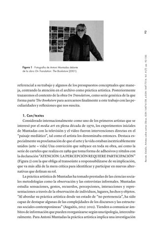 referencial a su trabajo y algunos de los presupuestos conceptuales que maneja, centrando la atención en el archivo como práctica artística. Posteriormente trazaremos el contexto de la obra On Translation, como serie genérica de la que forma parte The Bookstore para acercarnos finalmente a este trabajo con las peculiaridades y reflexiones que nos suscita. 1. Con/textos