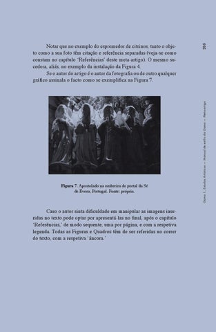 Notar que no exemplo do espremedor de citrinos, tanto o objeto como a sua foto têm citação e referência separadas (veja-se como constam no capítulo ‘Referências’ deste meta-artigo). O mesmo sucedera, aliás, no exemplo da instalação da Figura 4. Se o autor do artigo é o autor da fotografia ou de outro qualquer gráfico assinala o facto como se exemplifica na Figura 7.