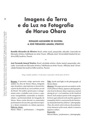 26 Oliveira, Ronaldo Alexandre de & Stratico, José Fernando Amaral (2013) “Imagens da Terra e da Luz na Fotografia de Haruo Ohara.” Revista Gama, Estudos Artísticos. ISSN 2182-8539, e-ISSN 2182-8725. Vol. 1 (1): pp. 26-32.