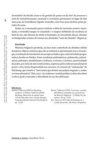 58 Lopes, Almerinda da Silva (2013) “A arte cinética de Maurício Salgueiro: entre a ironia e a denúncia do corpo torturado.” Revista Gama, Estudos Artísticos. ISSN 2182-8539, e-ISSN 2182-8725. Vol. 1 (1): pp. 53-58.