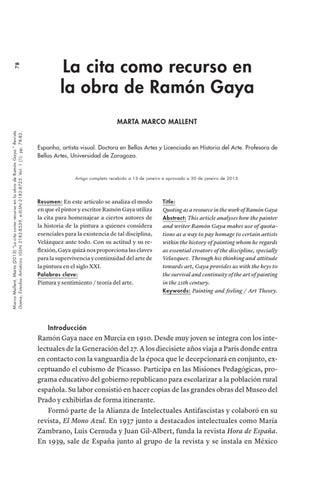 Marco Mallent, Marta (2013) “La cita como recurso en la obra de Ramón Gaya.” Revista Gama, Estudos Artísticos. ISSN 2182-8539, e-ISSN 2182-8725. Vol. 1 (1): pp. 78-82.