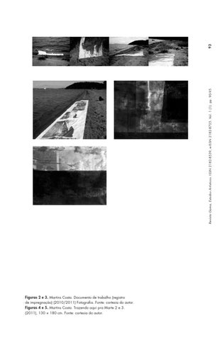 Figuras 2 e 3. Martins Costa. Documento de trabalho (registro de impregnação) (2010/2011) Fotografia. Fonte: cortesia do autor. Figuras 4 e 5. Martins Costa. Trazendo aqui pra Marte 2 e 3. (2011), 130 × 180 cm. Fonte: cortesia do autor.