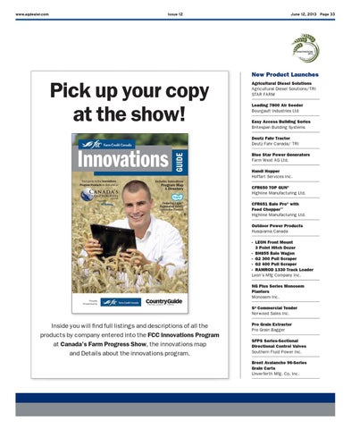 New Product Launches Agricultural Diesel Solutions Agricultural Diesel Solutions/TRI STAR FARM Leading 7800 Air Seeder Bourgault Industries Ltd Easy Access Building Series Britespan Building Systems Deutz Fahr Tractor Deutz Fahr Canada/ TRI Blue Star Power Generators Farm West AG Ltd. Handi Hopper Hoffart Services Inc.