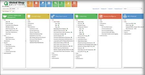 Many providers offer a built-in cloud solution with their ERP system. For Global Shop Solutions, you only need to implement one ERP server at your primary location and you can run it from anywhere you have an internet connection. It’s the easiest and most costeffective way to provide complete visibility throughout multiple businesses, and it enables standardization of workflows, production processes, company policies, rules and guidelines for virtually every activity in your enterprise.